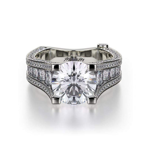 This immaculate Michael M engagement ring is displayed with a stunning round shaped center diamond (not included at time of purchase), and can fit an array of diamonds ranging in size from 1.85 carats to 2.10 carats. This Michael M engagement ring is immaculately adorned...- $12,950.00