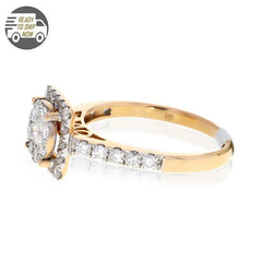 She will LOVE this designer made diamond engagement ring. Featuring a European Square Shank, 14k rose gold accents. The top part is a diamond cluster with a square halo around it giving it a big look, at a modest price.