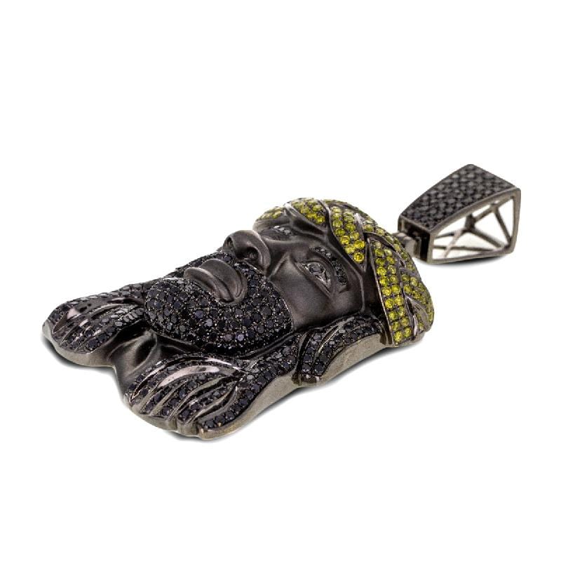 12.50ctw Diamond Jesus Pendant with Yellow and Black Diamonds set in 10K Black Gold. Pair this with an attractive gold chain from Capri Jewelers.