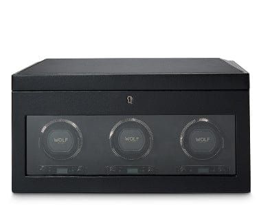 - Storage: 3 winding modules, 4pc watch storage with suspended cushions (cuff will accommodate up to 52mm case) 1 open compartment, travel case (1pc watch storage, 1 lidded compartment)
