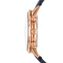 This 44mm Townsman features a blue satin dial, chronograph movement and matching leather strap.