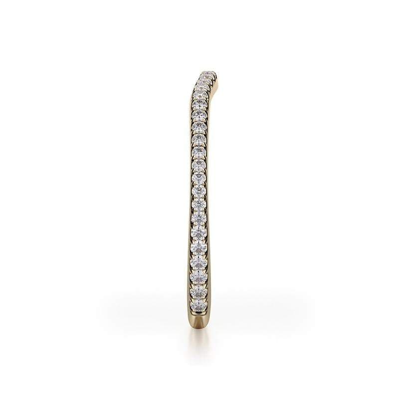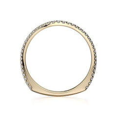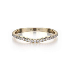 This Michael M ladies wedding band is adorned with brilliant round shaped prong set diamonds, and are placed in a beautiful 1/2 way ring style.