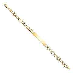 Stylish Stamp Figaro ID link 14K Bracelet in Yellow Gold.