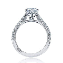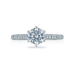 This ring is perfect for the Tacori Girl who is looking for the bigger diamond look. A brilliant round center diamond sits gently on a pavé set string of diamonds for an elegant and dainty look.