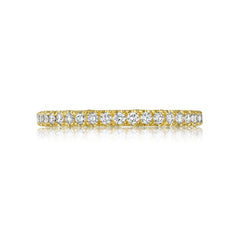 A truly unique Tacori wedding band with bright white diamonds pavé set in 18kt Yellow Gold providing an all diamond look. Worn alongside your Tacori engagement ring or stacked on your right hand this ring is not to be missed. Signature crescent silhouettes decorate the interior of the ring for beauty from all angles.
