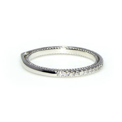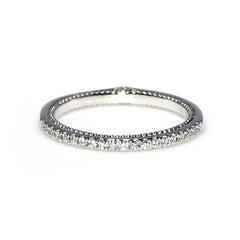 Part of the Verragio Couture Collection, this wedding band contains .15 carats of quality diamonds set in 18k white gold. Its interior profile has the signature Verragio French beading detail, which can be customized with rose or yellow gold. Diamonds can be added in place of the French beading for a more intensified profile look.