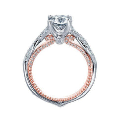 The Couture 0446-2WR diamond engagement ring is the perfect emblem of love: forever entwined, never to separate. This design features a diamond adorned twisted band, and eternity style diamonds set around the inner band.
