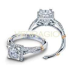 The movement of the twisted diamond band on the Parisian 106P is contrasted with the geometric shape of the square diamond halo, is this perfect marriage of structure and grace.