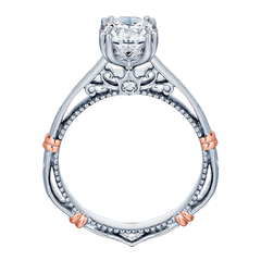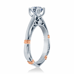 Let your love shine just a bit brighter with the clean and classic look of the Parisian 120. The solitaire diamond center sits atop a classic gold band, decorated solely with rose gold wraps and the trademark Parisian beading inside the band.