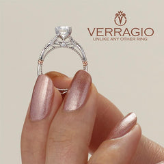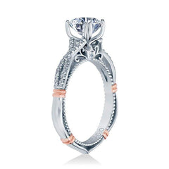 The universally appealing design of the Parisian 105 diamond engagement ring features a twisted diamond band, gold wraps, and antique beading that will sit pretty on any finger.