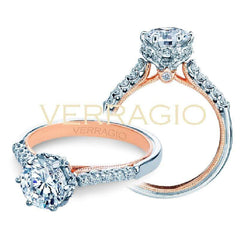 Renaissance-938R7-TT engagement ring from the new Renaissance Collection, featuring a rose gold profile and 0.30ct of round brilliant-cut diamonds to enhance a round diamond center.