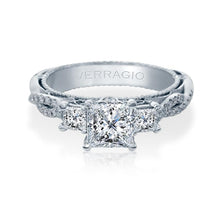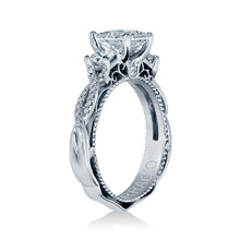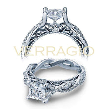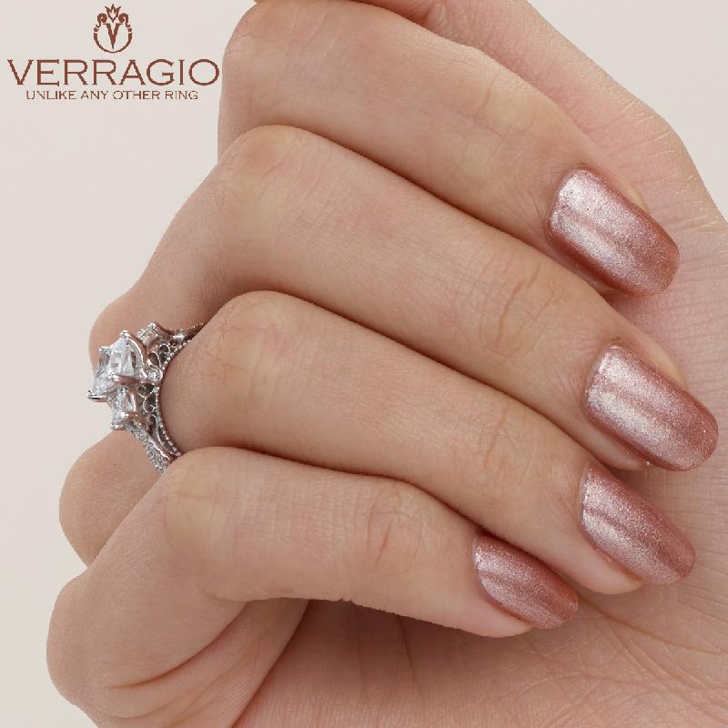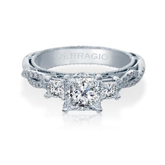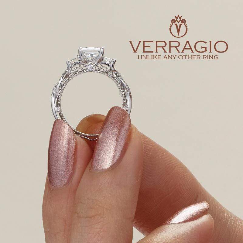 Literally make her feel like a princess with the Venetian 5013P diamond engagement ring. The inside lace detail and twisted diamond band – topped with not one, but thee princess cut diamonds – has made this ring one of Verragio’s most popular diamond engagement ring styles.