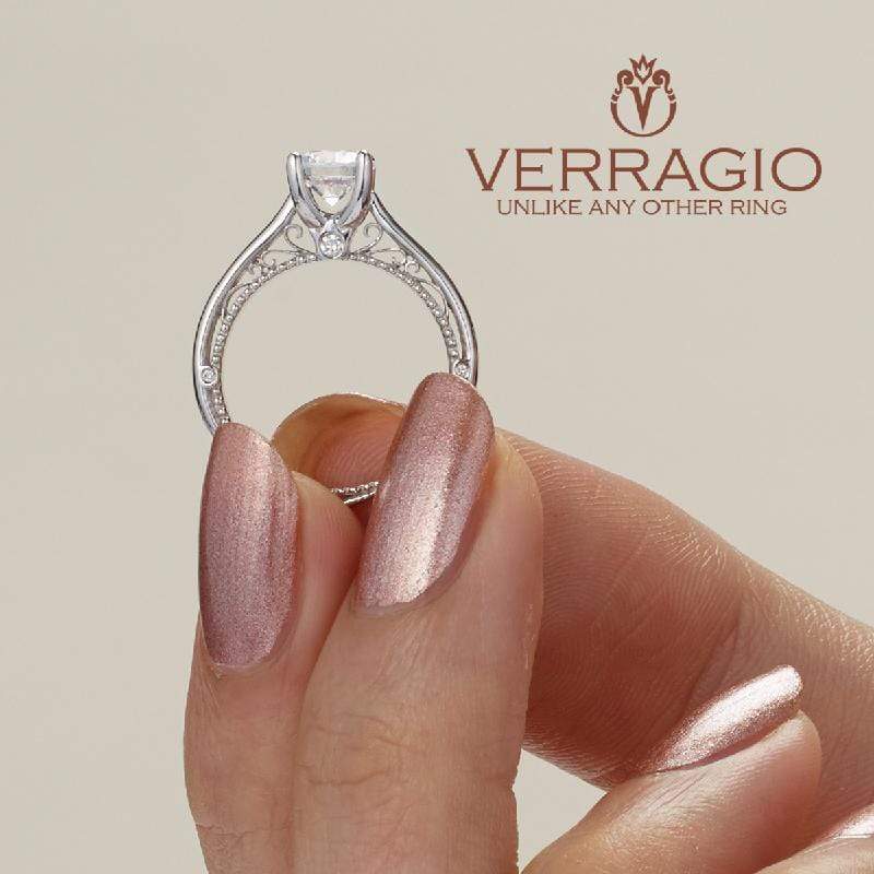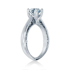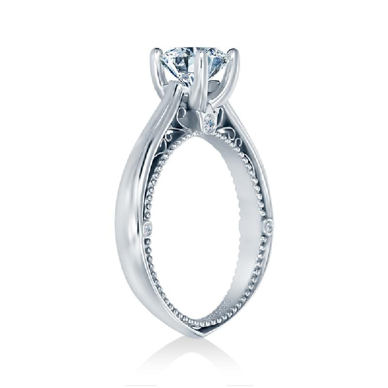 Don’t let the illusionary look of the Venetian 5047R diamond engagement ring fool you. Classic and clean on the outside, the inside band showcases the filigree-like design and antique beading that will make this ring deceptively intricate.