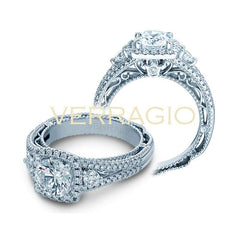 That moment when you walk into a room and the world stops, is what happens with the Venetian 5055CU diamond engagement rings. The design features a Cushion shaped diamond halo, and diamond band that splits enough to accommodated two round diamond sides.