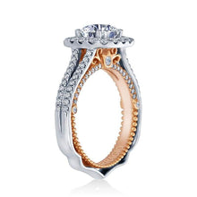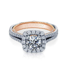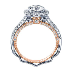 The Venetian 5067CU-2WR diamond engagement ring is smart, sexy, and stunning. This ring offers a row of diamonds around the inner band, topped by a split diamond band, and is completed with a cushion shaped halo setting.